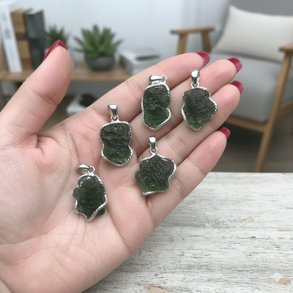 תליון מולדבייט מכסף 925 (Moldavite) – פצצת אטום של טרנספורמציה