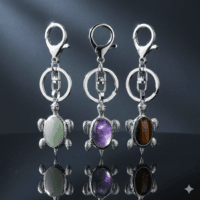 מחזיק מפתחות אלגנטי בעיצוב צבי, שמגיע עם מגוון קריסטלים לבחירה — כל אבן מביאה איתה וייב אחר, מהגנה ועד חיזוק אינטואיציה.